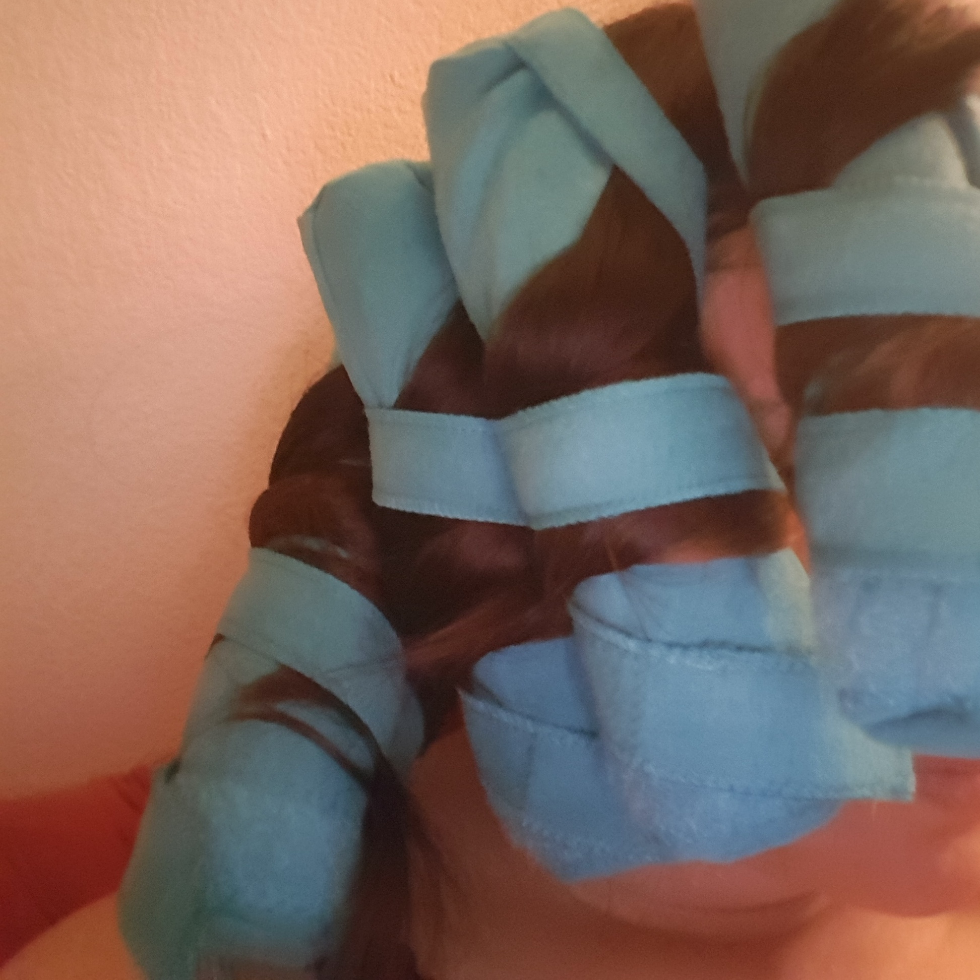 I received the Sleep Styler as a gift from a friend. If you haven’t heard of it it was on Shark Tank. But you use semi wet hair and curlers and sleep in it.