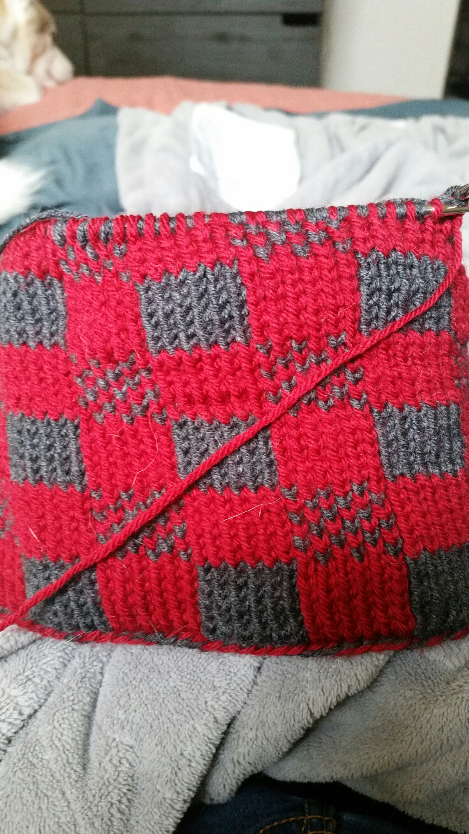 The skirt is made up of different knitting stitches. The dark grey is garter stitch, the turquois is a cable knit, the peapod is bamboo reed, and the rest are just stockinette. I then crochet some hearts in berry and put them on the sand wedges.
